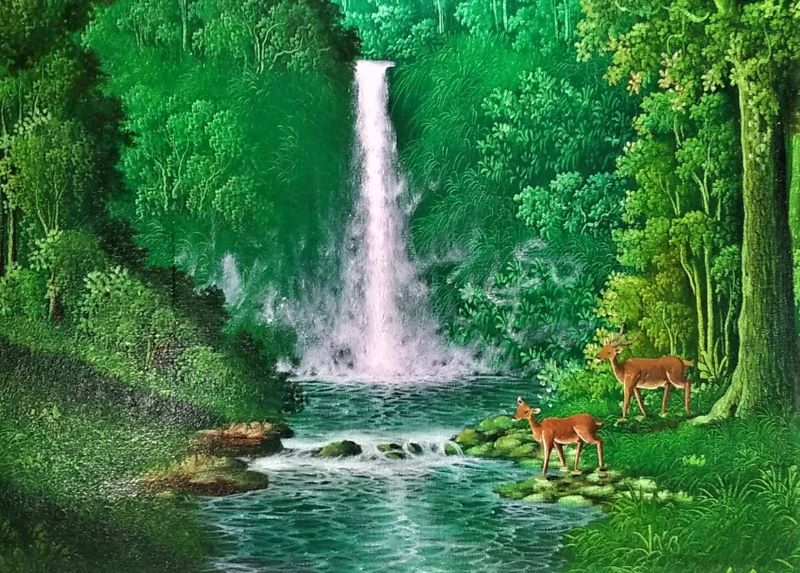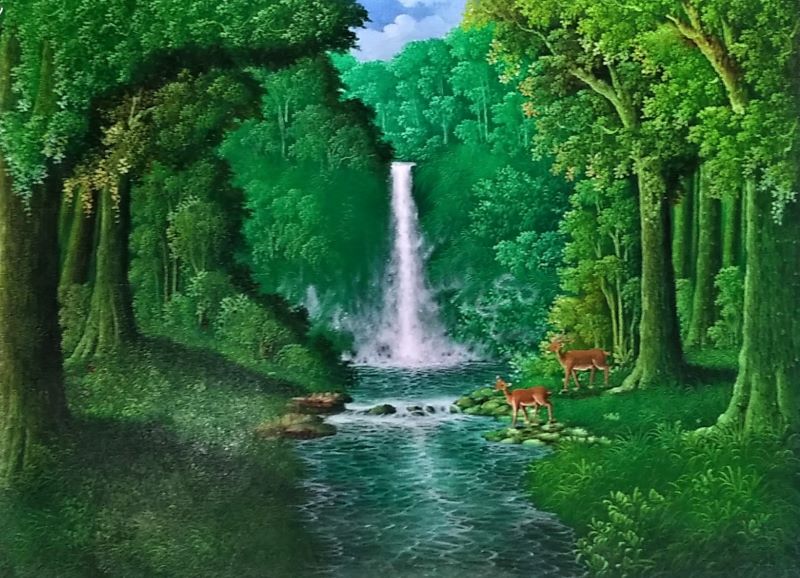 幽玄な熱帯の森の奥深く、水音が聞こえてきそうな清冽な滝の姿は、観る人の心を洗い流し癒してくれることでしょう。