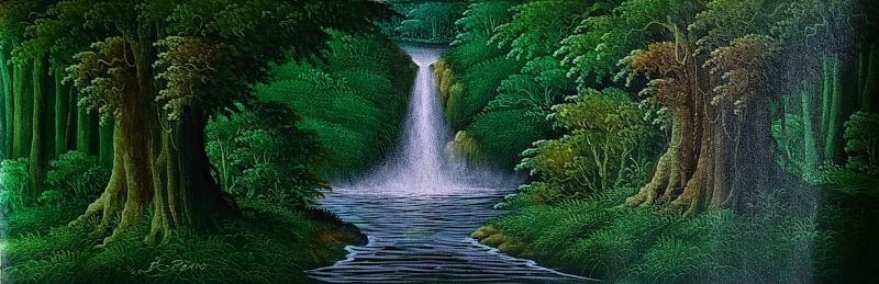 幽玄な熱帯の森の奥深く、水音が聞こえてきそうな清冽な滝の姿は、観る人の心を洗い流し癒してくれることでしょう。