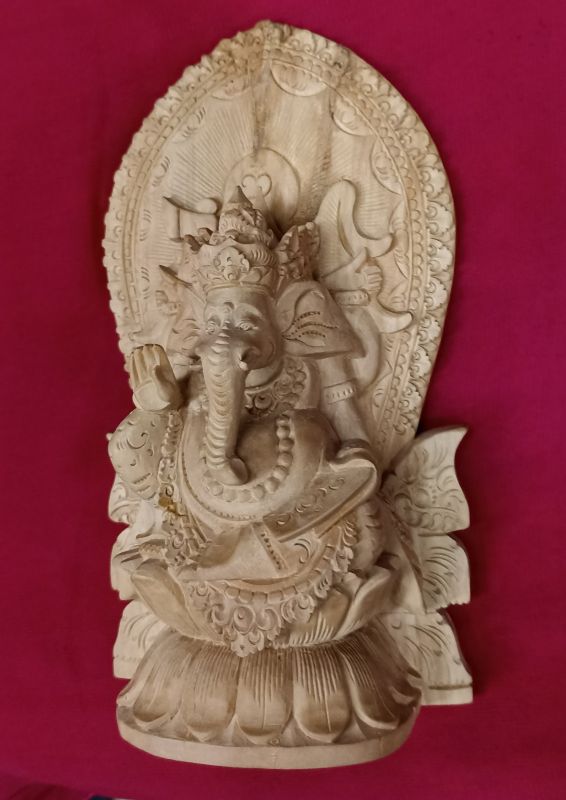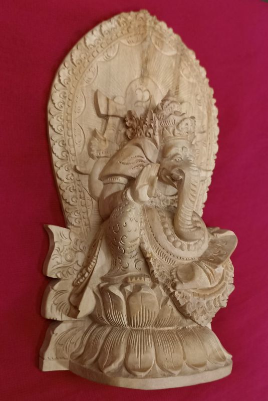 ほんのりと清廉な白檀の香りが漂う柔らかな表情のガネーシャ神です、上質で見事な彫りの木彫像です!
